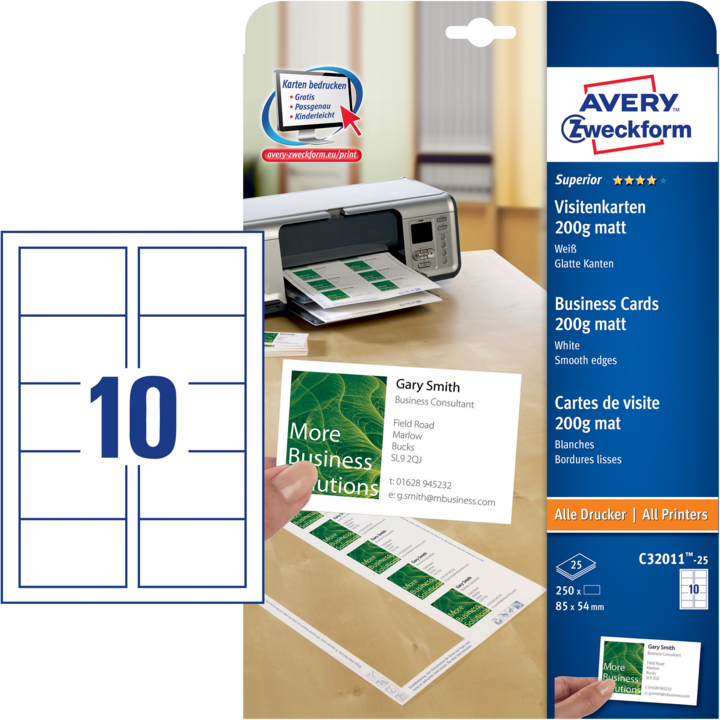 Visitkort Superior Enkel 85x54mm Avery C32011