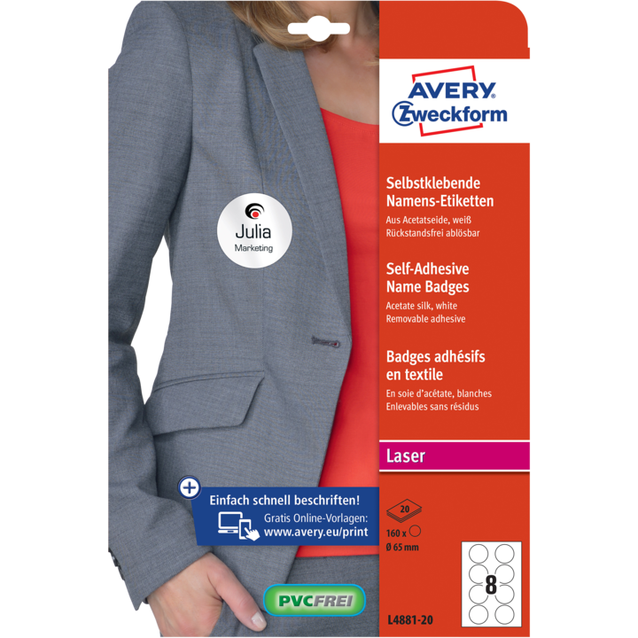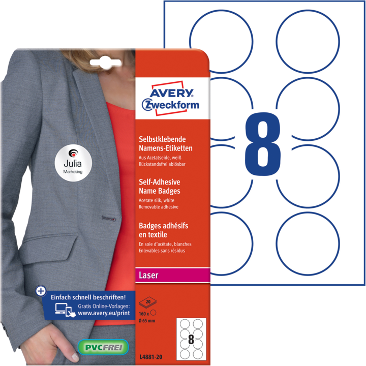Namnskylt Textil Vit Ø65mm Avery L4881