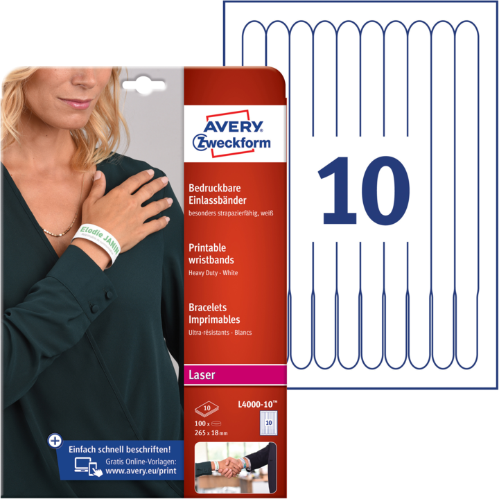 Etikett Armband Vit 265x18mm Avery L4000