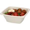 Bagassista valmistettu kulho. Bagassi on kuitumateriaali, jota syntyy sokerinvalmistuksen sivutuotteena. Kulho sopii niin kylmälle kuin kuumalle ruoalle.