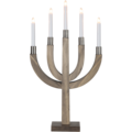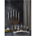 Ruskea puinen kynttelikkö. Kynttilöiden alaosassa messinkinen yksityiskohta. Aseta kynttelikkö esimerkiksi ikkunaan luomaan joulutunnelmaa.