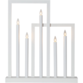Tyylikäs Star Tradingin kynttilänjalka - suoralinjainen ja moderni. Puinen runko ja eripituiset metalliputket, joiden päissä valot. Loistaa kauniisti.