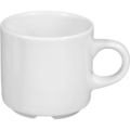 Klassisk staplingsbar kopp i vit färg ur serien Meran från Seltmann Wieden. Koppen är tillverkad av ett elegant fältspat porslin som är särskilt anpassat för hotellverksamheter.