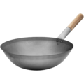 Patinan hiiliteräksinen wokkipannu. Wokissa on pyöreä pohja, puinen kädensija. Sopii hienompiin niin ravintolakeittiöihin kuin kotikokkailuunkin.