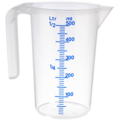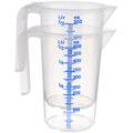 Köksmått i plast ur serien Pro från APS. Köksmåttet har en markerad måttskala i liter och milliliter samt ett öppet handtag som gör den greppvänlig. Passar utmärkt att användas i restaurangkök och bagerier.