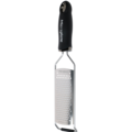 Microplane-karkea raastinrauta. Karkea Microplane-raastin, jossa on ultraterävä terä kestävästä ruostumattomasta teräksestä. Leikkaa raaka-aineet tarkasti rikkomatta tai murskaamatta niitä. Sopii erinomaisesti juuston, porkkanan, inkiväärin, valkosipulin, kookoksen ja pähkinöiden raastamiseen ym. raastamiseen.