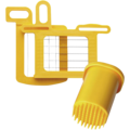 Gallerkit i två delar från Dynamic. Gallret tärnar frukter och grönsaker i fina kubformade bitar.