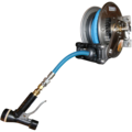 Slangvinda öppen från Diskomat. En slangvinda med en kraftig konstruktion av rostfritt stål för effektiv rengöring av bland annat diskinlämningsenheten. Kommer med ett svängbart fäste för en enkel och smidig hantering.