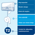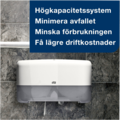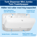 Tork Twin -annostelijaan mahtuu kaksi wc-paperirullaa. Se takaa, että paperia on aina saatavilla, koska laitteeseen mahtuu kaksi täyttä suuren kapasiteetin rullaa. Annostelija sopii erinomaisesti käymälätiloihin, jotka ovat kovassa käytössä.
