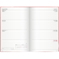 Kovakantinen päiväkirjakalenteri punaisessa keinonahassa tarjoaa runsaasti kirjoitustilaa ja kattaa koko aukeaman. Yksi viikko per aukeama, käytännöllinen kirjanmerkkinauha ja vuosisuunnitelmat kuluvaa ja seuraavaa vuotta varten.