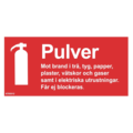 Punainen palokyltti symbolilla ja tekstillä "Jauhe - Tulipalojen sammuttamiseen puussa, kankaassa, paperissa, muoveissa, nesteissä ja kaasuissa sekä sähkölaitteissa. Ei saa peittää".