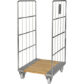 Robust rullcontainer med två grindar längs med långsidorna och öppna kortsidor för flexibel användning. Rullcontainer träbotten, obromsad från Kongamek är förzinkad och har en botten av björkträ för extra hög tålighet.