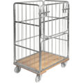Robust rullcontainer med en halvhängd grind på 845 mm sidan som gör det enkelt att komma åt godset. Rullcontainer träbotten, bromsad från Kongamek är förzinkad och har en botten av björkträ för extra hög tålighet.