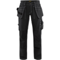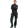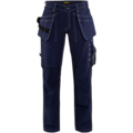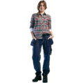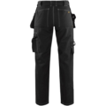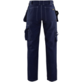 Naisten malli. Kaksi vahvistettua naulataskua voidaan työntää etutaskuihin. Kaksi takataskua palkeella. ym. Materiaali: 100% puuvillatwilli. Paino: 370 g/m².Koot: C34-C46.