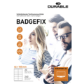 BADGEFIX är en självhäftande namnskylt av acetatsilke 46x105 mm på utskrivbara A4 ark. Extra breda för bra läsbarhet på långt avstånd.