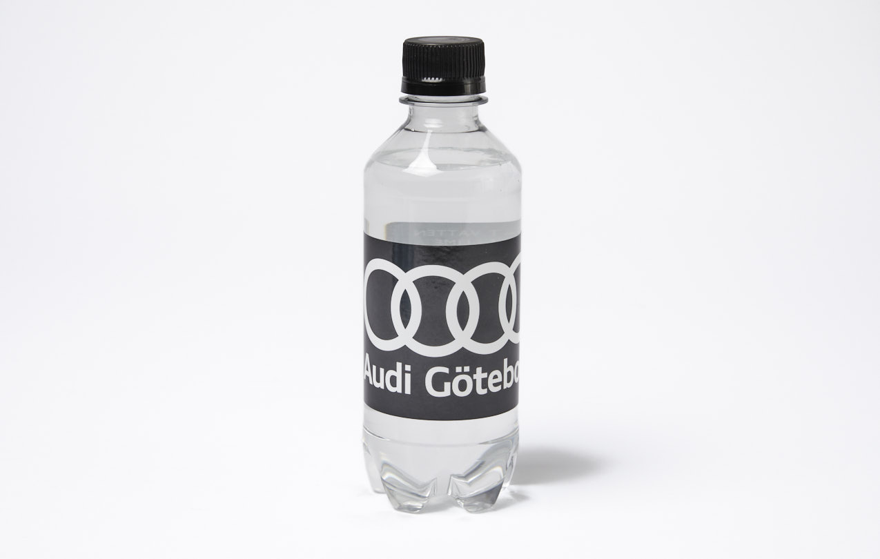Marknadsför ditt företag på ett hälsosamt sätt med profilvatten. Vi har smaksatt och naturellt, kolsyrat och stilla vatten i 33 cl och 50 cl flaskor. Här kan du välja bland flera färger på korken och anpassa exakt efter din profiltryckta etikett.