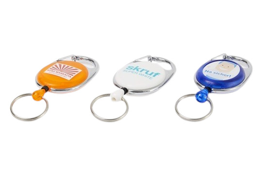 Praktiska nyckelringar med jojo-funktion och karbinhake – perfekta för företag som vill profilera sig med en smart och användbar giveaway. Med utdragbar lina och smidig fästning i bältet.
