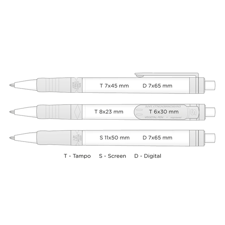 Kulspetspennan Vegetal har ett bekvämt grepp och smidig tryckknapp som ger en skön skrivupplevelse. Pennorna är tillverkade av NatureWorks PLA och kommer i solid design med transparenta och färgade detaljer. Välj bland modellerna: