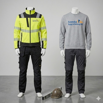 Rätt kläder gör jobbet enklare. Därför har vi arbetsbyxor med rätt fickor för knäskydd och verktyg, samt varselkläder (EN-certifierade) när synlighet är ett krav. Vi vet att hantverkskläder tvättas ofta och slits hårt; därför använder vi tryckmetoder och brodyr som håller samma höga kvalitet som själva plaggen.