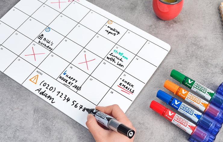 V-Board Master är en del av Pilots BeGreen-sortiment och är tillverkad av 91% återvunnen plast. En penna som fylls på tre gånger har 75% mindre CO2-avtryck jämfört med fyra nya pennor.