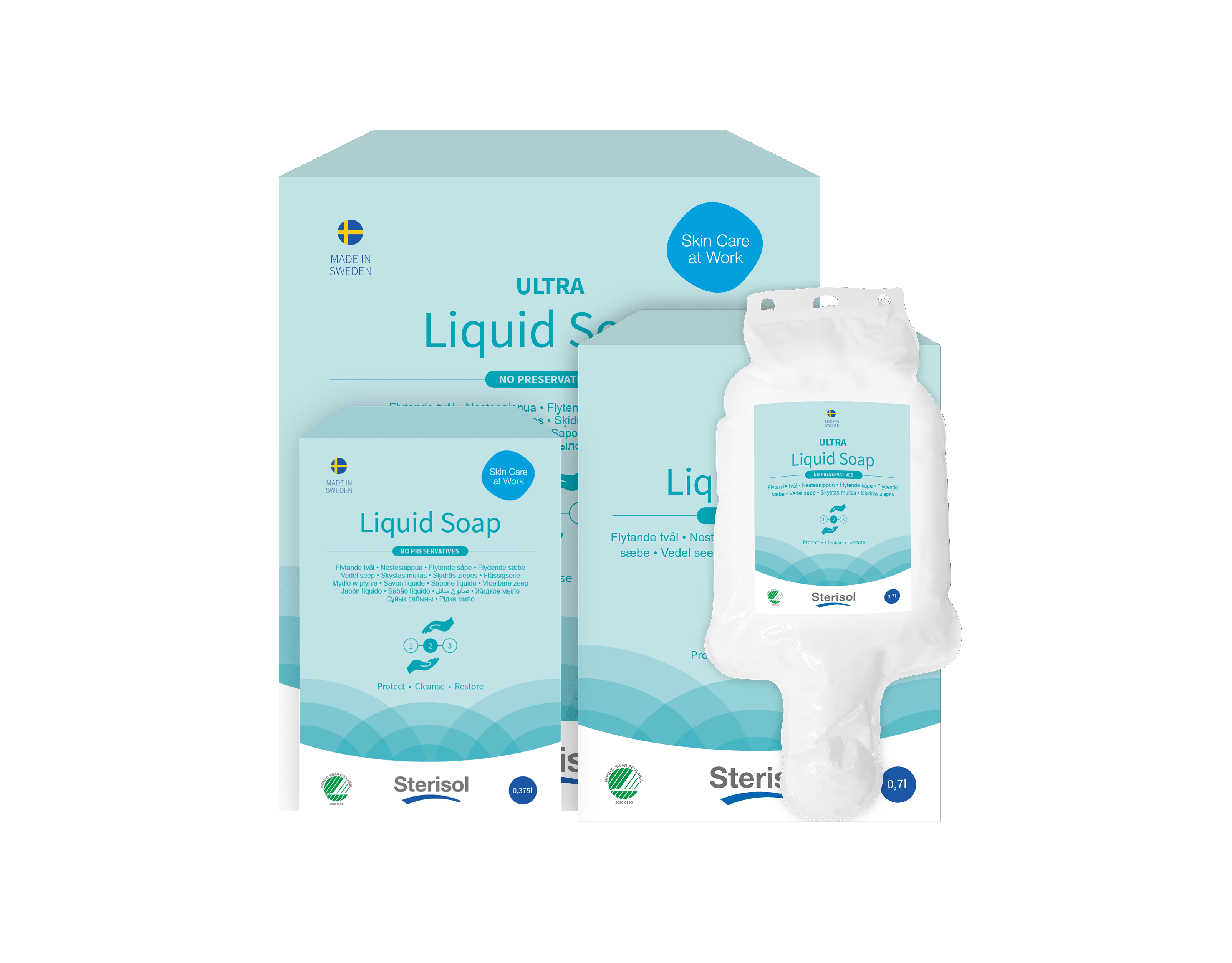 Sterisol System bygger på en unik svensk uppfinning där hudvårdsprodukterna fylls i lufttäta påsar med en särskild pump som isolerar innehållet från den yttre världen. Detta gör våra produkter så pass hygieniska att de flesta inte behöver något konserveringsmedel. De tunna men starka påsarna gör också att man kan minska sin plastförbrukning avsevärt om man sedan tidigare använder flaskor. Med en tömningsgrad på 99% kan man även minska tvålsvinnet. Använd all tvål du betalat för!