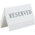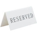 Stadig Bordskyl i akryl med engelsk text "RESERVED" från Securit. Praktiska skyltar som är utmärkt för reservationer i matserveringar. Skyltarna är stapelbara och tvättbara med en tydlig text.