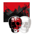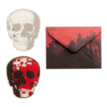 Ett inbjudningskort i form av en döskalle, perfekt att skriva dina inbjudningar på till din halloween fest.