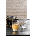 Randig mugg i klart glas från serien Quessant av La Rochère. Glasserien är tillverkad av pressglas med en slank design och randig dekor. Serien är en nyare version av den klassiska franska designen.