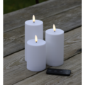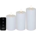 Blockljus LED 3-p Ø7xH10,12,15 är ett stilrent set med tre LED-blockljus i olika höjder som ger ett mjukt och stämningsfullt sken utan öppen låga. De passar perfekt för att skapa en varm atmosfär i hemmet, på altanen eller vid dukade bord. Med timerfunktion styrd via fjärrkontroll är de enkla att använda i vardagen.
