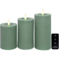 Blockljus LED 3-p Vit är ett dekorativt set med tre stilrena LED-blockljus som ger ett varmt och realistiskt ljussken utan öppen låga. De passar perfekt för att skapa en lugn och inbjudande atmosfär i hemmet, oavsett om det är till vardags eller vid festligare tillfällen. Med timerfunktion styrd via fjärrkontroll får du en smidig och återkommande belysning.