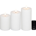 Blockljus LED 3-p Vit är ett dekorativt set med tre stilrena LED-blockljus som ger ett varmt och realistiskt ljussken utan öppen låga. De passar perfekt för att skapa en lugn och inbjudande atmosfär i hemmet, oavsett om det är till vardags eller vid festligare tillfällen. Med timerfunktion styrd via fjärrkontroll får du en smidig och återkommande belysning.
