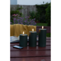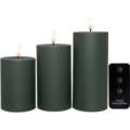Blockljusset 3-p plast Grön är ett dekorativt set med tre LED-blockljus i olika höjder som sprider ett mjukt och stämningsfullt sken i en elegant grön ton. De är perfekta för att skapa en harmonisk och mysig känsla i hemmet, på altanen eller vid dukade bord. Med timerfunktion och fjärrkontroll blir de både enkla och bekväma att använda i vardagen.