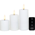 Blockljusset 3-p Vit Utomhus är ett dekorativt set med tre LED-blockljus i olika storlekar som är anpassade för utomhusbruk och ger ett mjukt och stämningsfullt sken. De är perfekta för att skapa en välkomnande atmosfär på altan, balkong eller vid entrén. Med fjärrkontroll och 6-timmars timer tänds ljusen automatiskt och är enkla att använda i vardagen.