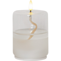 Lyktaur serien Flamme från Star Trading. Skapa en förtrollande atmosfär med Flamme Float-ljuset. Med sin glasbehållare och transparenta vax ger det en illusion av flytande veka i oljeljusstil. Det genomskinliga vaxet kan innehålla luftbubblor för att skapa en ännu mer naturtrogen effekt. Ljuset är cirka 8x13 cm inklusive lågan som sticker upp ur glaset. Detta elektriska ljus blir en vacker dekoration, både ensamt och tillsammans med andra ljus från vår Flamme Float-serie. Med timerfunktionen kan du njuta av det vackra varmvita skenet i upp till 30 dagar. Ljuset drivs av 3 AAA-batterier, som inte ingår. Skapa en magisk stämning med detta vackra ljus!