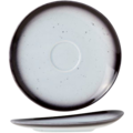 Runt Kaffefat i vit färg med färgad kant ur serien Vigo Shell från Cosy & Trendy Professional. Fatet är tillverkad i slitstarkt porslin som är helt skyddat av en glasyrbeläggning.