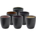 Espressokopp svart 6-pack. En del av en den handgjorda stengodsserien från Bitz där varje del är unik. Den vackra strukturen med både matta och blanka varianter lyfter fram stengodsets glasyr.