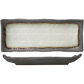 Ett fat som har en böljande utsida i sten-imitation som sträcker sig till den ljusa insidan av porslinet och skapar en mörk dekor. Detta skapar fina kontraster och ramar in det som serveras i, passar utmärkt att använda som uppläggningsfat vid servering.
