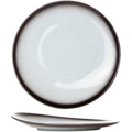 Rund Tallrik i vit färg med färgad kant ur serien Vigo Shell från Cosy & Trendy Professional. Tallriken är tillverkad i slitstarkt porslin som är helt skyddat av en glasyrbeläggning.