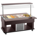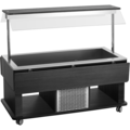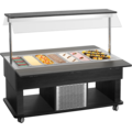 Buffévagn för kallhållning med plats för 4x1/1 GN-150mm från Bartscher är optimal utrustad med inbyggd belysning, hostskydd med hyllfunktion och hjul för bekväm transport. Perfekta valet för presentation av kalla rätter.