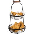 Korgställ APS med dubbla höjder, utrustat med trägandtag och korgar i svart metall. Perfekt för att organisera och servera bröd, frukt eller snacks i din restaurang eller café. Den stiliga designen ger en modern touch och är både funktionell och elegant. Beställ ditt korgställ idag!