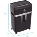 HP Pro 12MC är en högsäker dokumentförstörare med mikroskärning som strimlar dina dokument till små 2×15 mm partiklar enligt säkerhetsnivå P-5. Det gör den idealisk för mindre kontor, mottagningar och advokatbyråer som hanterar känslig information. Maskinen klarar upp till 12 A4-ark åt gången och arbetar tyst med en ljudnivå på endast 55 dB. Den 25-liters utdragbara behållaren med visningsfönster gör det enkelt att se när det är dags att tömma.