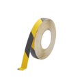 Halkskyddstejp avsedd för inomhusbruk eller i skyddade lägen utomhus där det finns en halkrisk. Det kan vara hala golv eller trappsteg, stegar, sluttande ramper, pedaler och stegavsatser på maskiner och fordon. Det här är en 25 mm smal, varselfärgad självhäftande tejp med medelgrov kornstorlek som ger en yta med bra grepp och friktion.