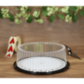 Runda vita tårtbrickor med gulddekor. För snygg exponering av era tårtor och bakverk.