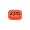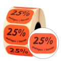 Etikett med text "25% Rabatt avdrages i kassan" är en etikett för dig som behöver rea ut eller sänka priset på produkter i din butik. Den röda färgen får kunderna att lägga märke till priset och produkten.