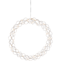 Stilren krans som är kromfärgad. Kransen har en dew dropsslinga som består av 50 LED-ljus som ger ifrån sig ett varmvitt sken. Passar utmärkt att på en vägg eller i ett fönster i hemmet.