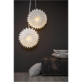 Vacker pappersstjärna med guld prickar på mellan lagret. Stjärnan har tre lager veckat papper. Ett elegant band ingår för att lättare kunna hänga upp stjärnan. Stjärnan sprider stämning och ger hemmet den där speciella julkänslan. Kan hängas både i förnster och mot en vägg. Köp till sladdställ, och ljuskälla för belysning i stjärnan.
