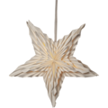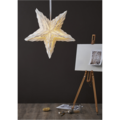 Fantastisk vit pappersstjärna som är tillverkad av tre lager veckat papper. Konturen följer stjärnformen och är lite ojämn för en vintrigare känsla. Ett elegant band ingår för att lättare kunna hänga upp stjärnan. Adventsstjärnan ger hemmet den där speciella julkänslan. Kan hängas både i förnster och mot en vägg. Köp till sladdställ och lampa om man vill ha stjärnan upplyst.