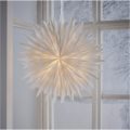 Fantastisk pappersstjärna som är tillverkad av tre lager veckat papper. Konturen har runda flickar som gör att stjärnan ser busigt vintrig ut. Ett elegant band ingår för att lättare kunna hänga upp stjärnan. Adventsstjärnan skapar en perkeft julstämning och ger hemmet den där speciella julkänslan. Kan hängas både i förnster och mot en vägg. Köp till sladdställ och ljuskälla för belysning i stjärnan.