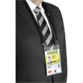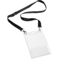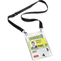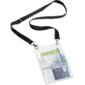 Namnskylt för event med A6- ficka med plats för t ex programpunkter. Komplett med textilhalsband.