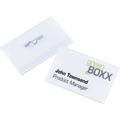Namnskylt i klassiskt som fästs med säkerhetsnål. format 54x90mm är standard för visitkort. Med ett tumgrepp som gör det enkelt att ta ut kortet.